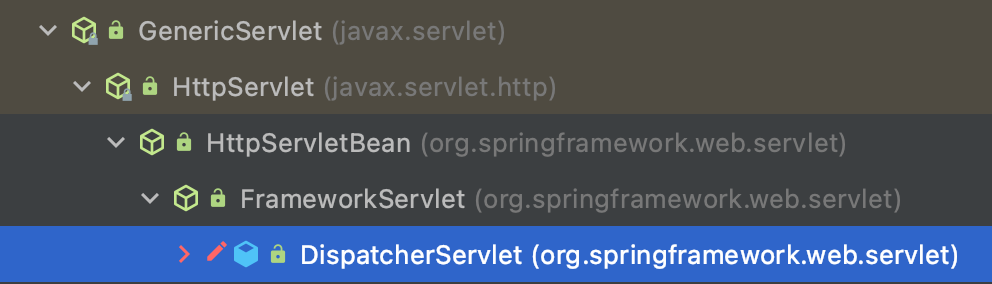 그 위에 Spring의 FrameworkServlet과 HttpServletBean을 상속하고 있지만,