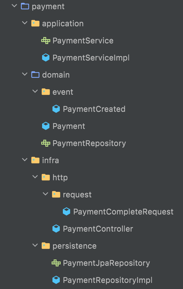 또한 Payment의 내부 패키지를 열어보면 다음과 같이 구성했다.